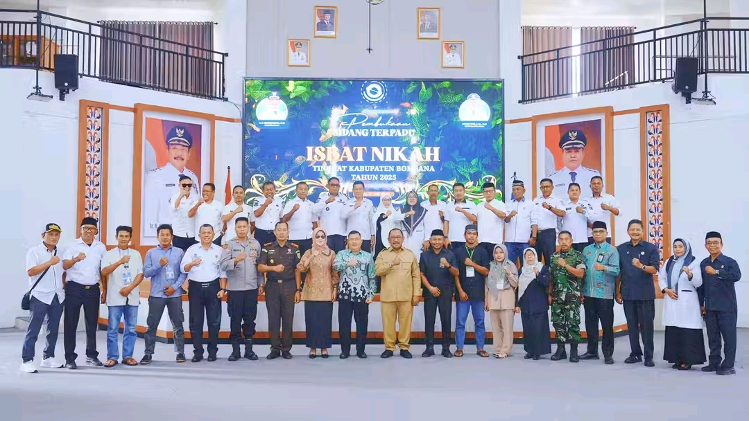 TILIK.ID — Satu lagi program 100 Kerja Bupati dan Wakil Bupati Bombana, Ir H Burhanuddin, M.SI dan Ahmad Yani S.Pd, M.Si, direalisasikan. Sebanyak 51 pasangan nikah mendapatkan legalitas pernikahan secara gratis melalui sidang terpadu Isbat Nikah di Aula Tanduale Kantor Bupati, 21 Mei 2025 lalu.