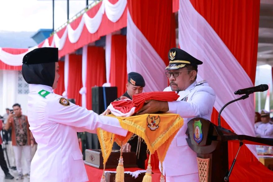 TILIK.ID — Detik-detik pengibaran bendera merah putih menandai peringatan Hari Ulang Tahun (HUT) ke-80 Republik Indonesia di Kabupaten Bombana Provinsi Sulawesi Tenggara (Sultra).