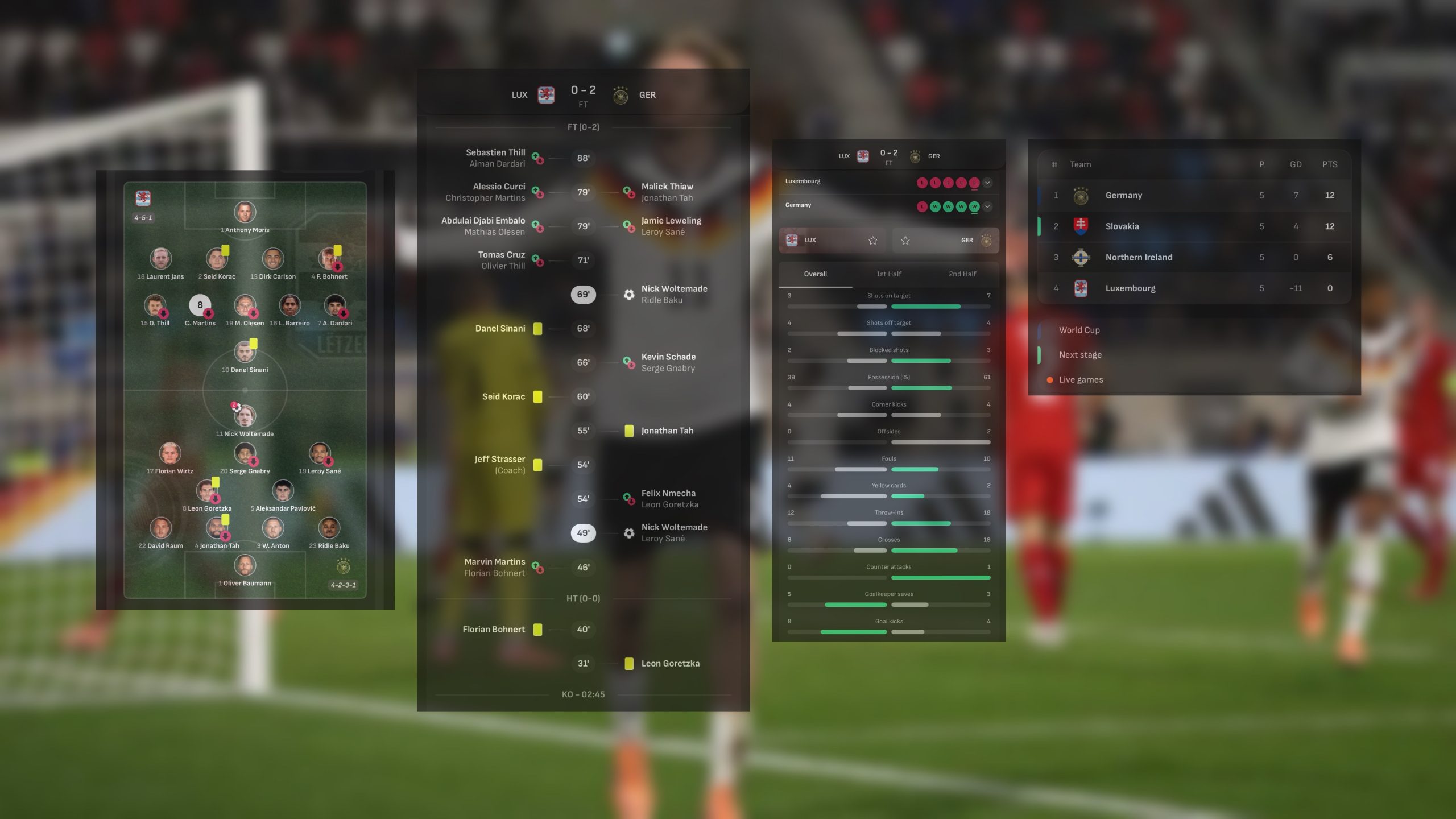 Memasuki babak kedua, Jerman baru berhasil memecah kebuntuan pada menit ke-49. Leroy Sane menusuk dari sisi kiri dan memberikan umpan matang yang diselesaikan Nick Woltemade untuk membawa Jerman unggul 1-0.