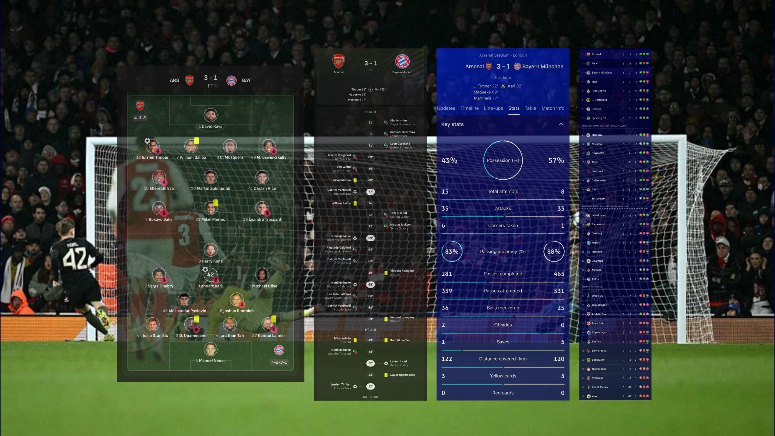 Dalam laga, The Gunner unggul lebih dulu lewat gol Jurrien Timber, yang dibalas Bayern via gol Lennart Kars. Tuan rumah lalu mencetak dua gol tambahan berkat Noni Madueke dan Gabriel Martinelli.