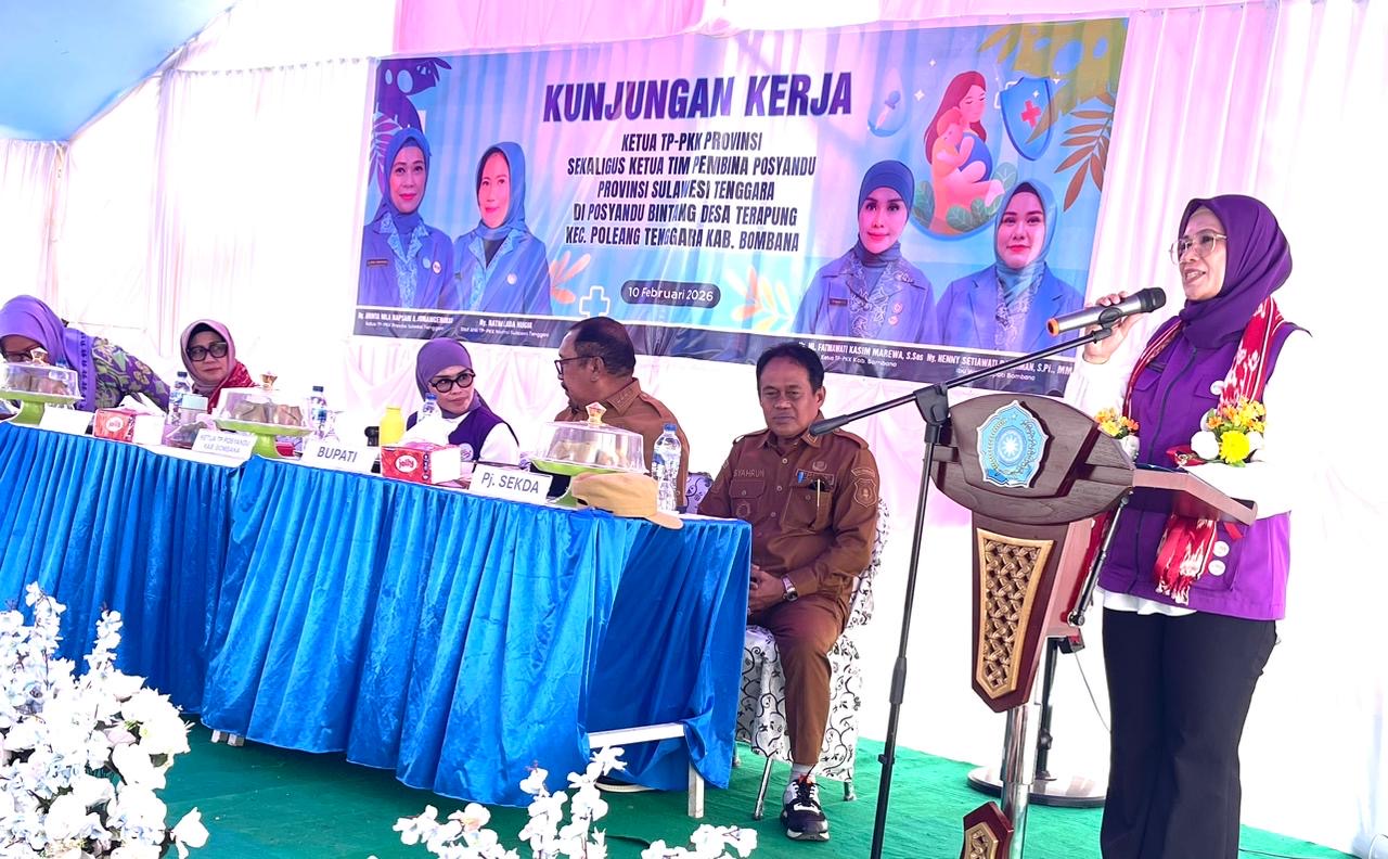 Transformasi ini dikemukakan langsung oleh Ketua Tim Pembina Posyandu Sulawesi Tenggara, Ny Arinta Nila Hapsari A. Sumangerukka, saat kunjungan kerja di Posyandu Desa Terapung Kecamatan Poleang Tenggara Kabupaten Bombana,, Selasa (10/2/2026).