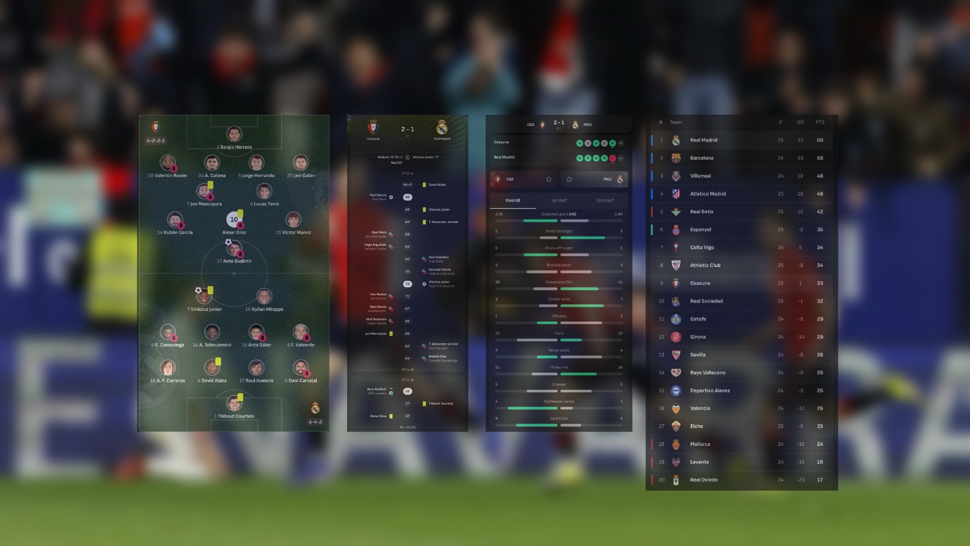 Osasuna membuka skor melalui gol penalti Ante Budimir (38′) sebelum Vinicius Junior menyamakan kedudukan pada menit ke-73. Tuan rumah memastikan kemenangan pada menit ke-90 lewat gol Raul Garcia.