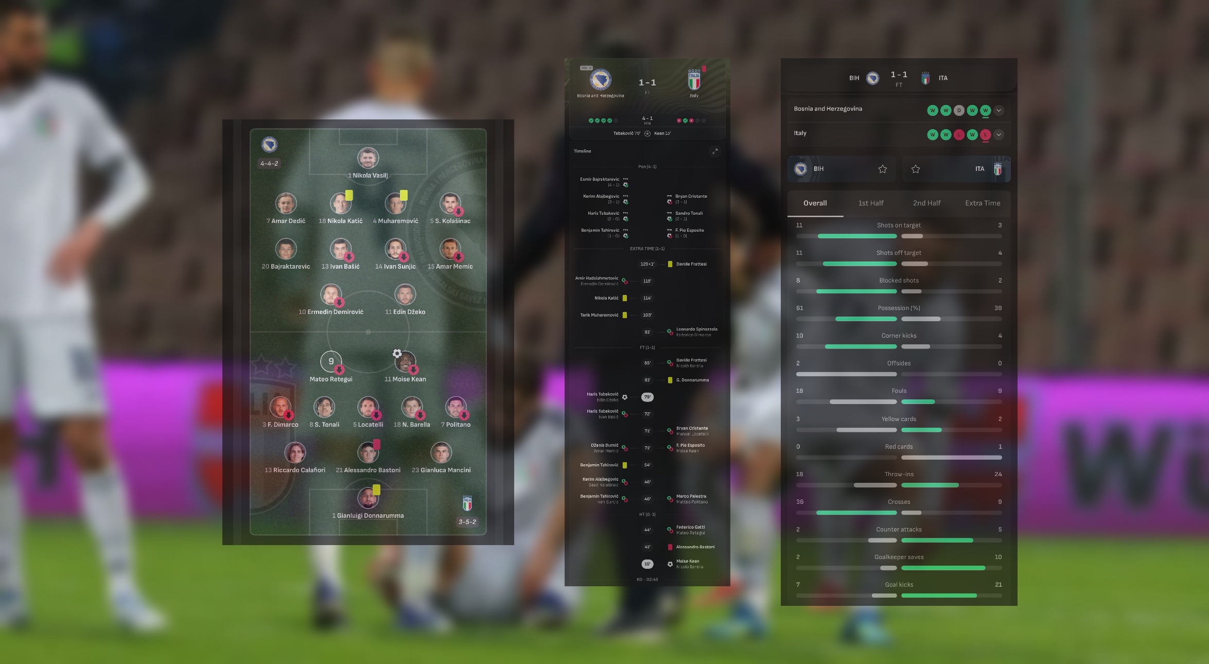 Dalam adu tendangan penalti itu Italia kalah 4-1 setelah dua penendang mereka gagal, sedangkan empat eksekutor Bosnia sukses melaksanakan tugasnya dengan baik.