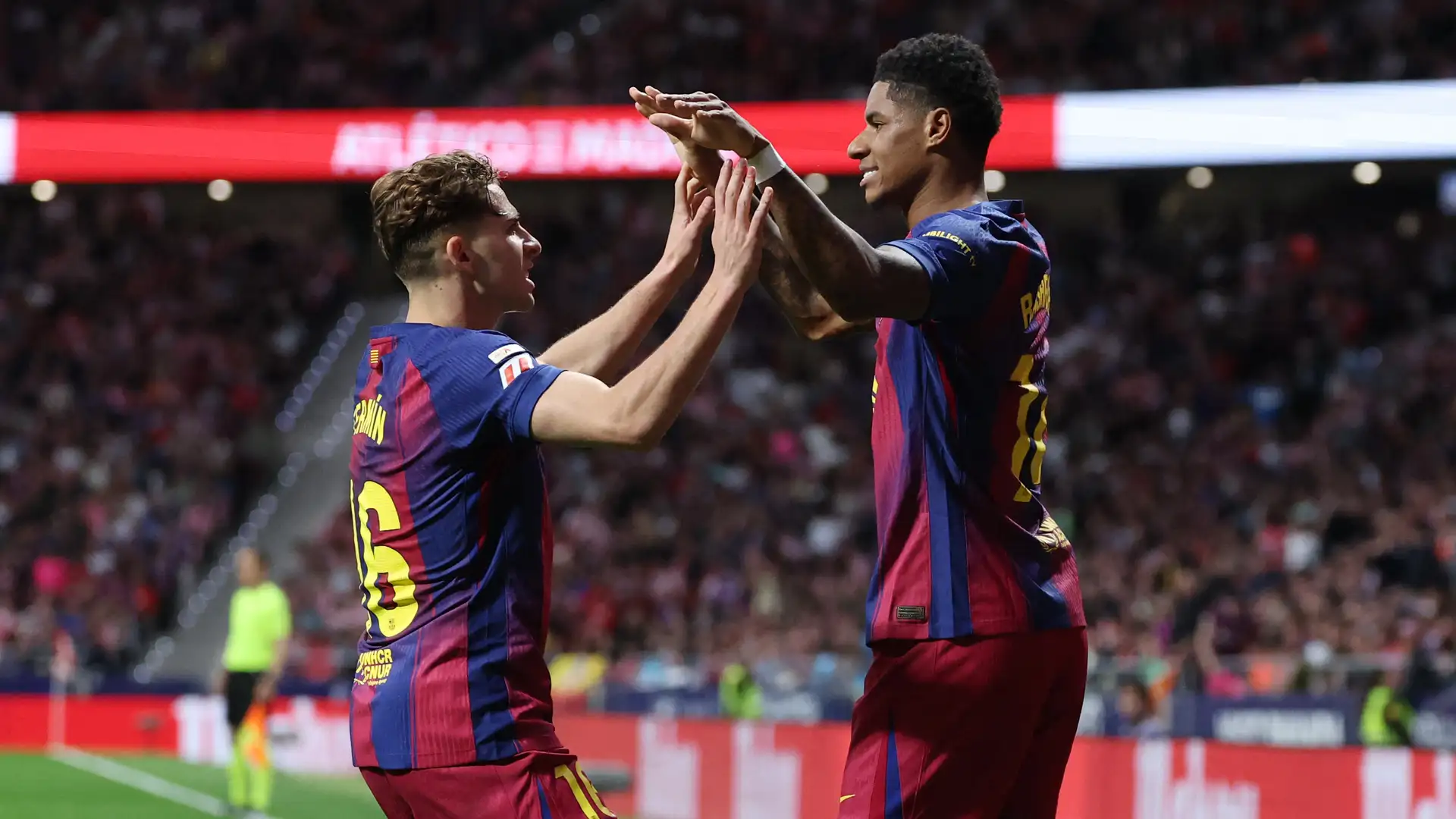 Barcelona tampil agresif sejak menit pertama. Lamine Yamal mengancam pada menit kedua, tapi diblok pemain bertahan Atletico.