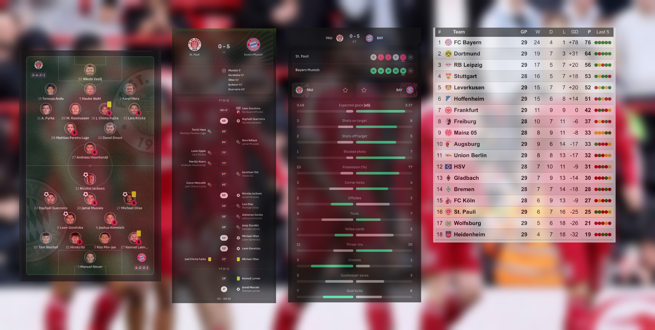 Bermain sebagai tamu di Stadion Millerntor, Hamburg, Sabtu waktu setempat, Bayern menang berkat gol Jamal Musiala, Leon Goretzka, Michael Olise, Nicolas Jackson, dan Raphael Guerreiro.