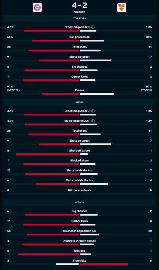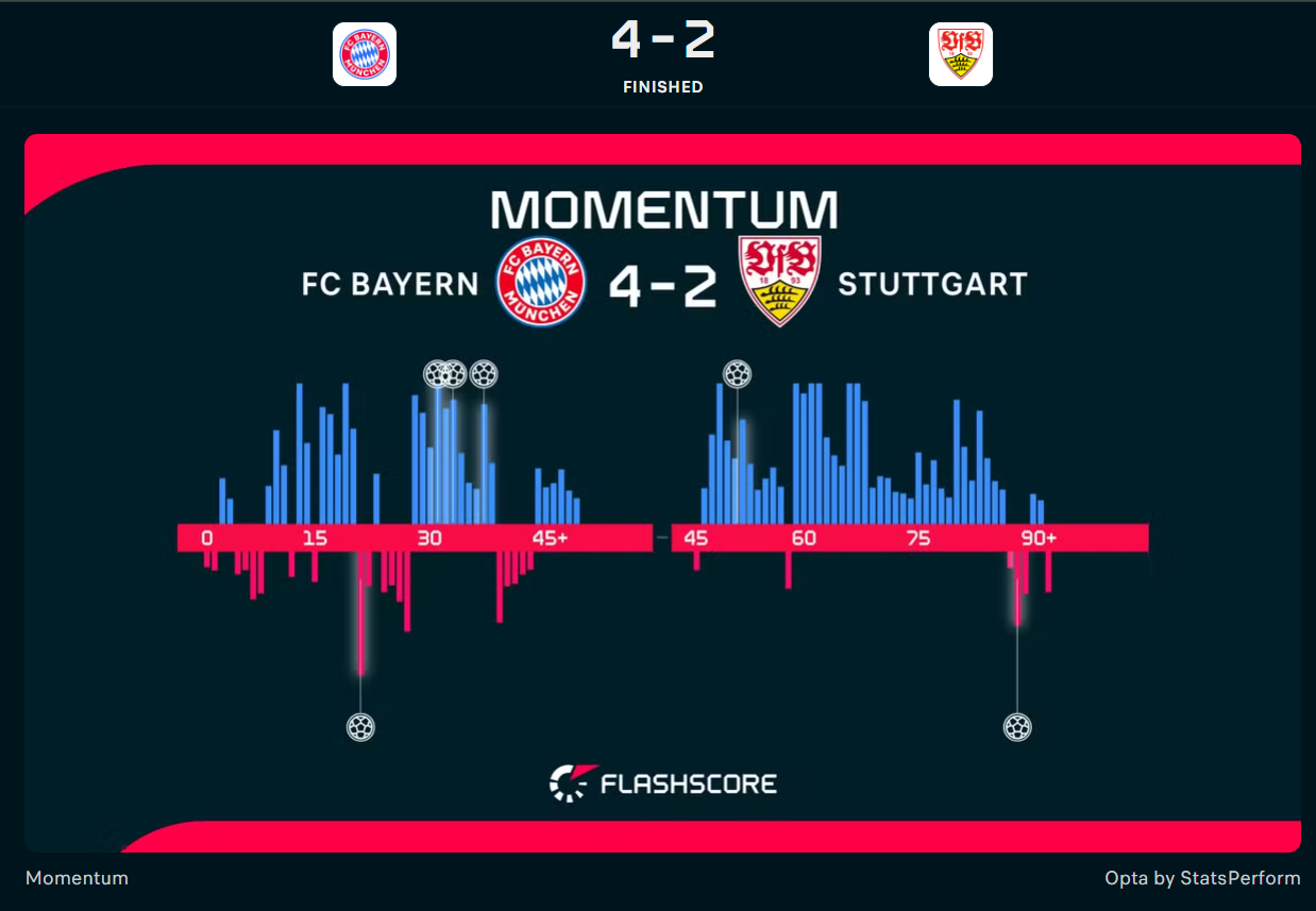 Menjamu Stuttgart, Luis Diaz mencetak dua assist dan Jamal Musiala satu assist di babak pertama, tetapi keduanya diganti pada jeda babak pertama menjelang fase akhir musim.